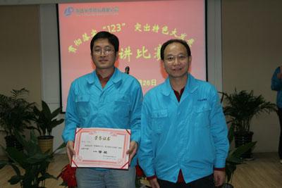 | ??????? 虎步奔騰開勝景,春風(fēng)浩蕩展鴻圖。為促進(jìn)公司各單位認(rèn)真領(lǐng)會集團公司“3333”戰(zhàn)略和利達(dá)光電“123”戰(zhàn)略的深刻內(nèi)涵,進(jìn)一步激勵員工統(tǒng)一認(rèn)識,轉(zhuǎn)變觀念,增強信心,立足崗位,奮發(fā)有為,努力實現(xiàn)公司2010年經(jīng)營目標(biāo),3月26日晚上7點,利達(dá)光電黨總支在104#四樓培訓(xùn)室舉辦了“貫徹落實123,突出特色大發(fā)展”演講比賽。利達(dá)光電總經(jīng)理李智超和各單位員工代表一起來到演講比賽現(xiàn)場,聆聽我們利達(dá)員工春天的戰(zhàn)歌,給參賽選手們帶來了莫大的鼓勵和支持。在充滿激情的《學(xué)習(xí)123 踐行123》的詩朗誦中演講比賽拉開了帷幕。當(dāng)晚共有11名選手參加比賽,演講內(nèi)容以123戰(zhàn)略為指導(dǎo),緊密結(jié)合各單位工作實際和本職工作。選手們精彩的演講中飽含著激情,帶來了感動,大家盡情暢談了自己對123戰(zhàn)略的理解,彰顯了科技人員和基層員工、奮力拼搏、積極向上的良好精神風(fēng)貌。選手們以充實的內(nèi)容、優(yōu)美的語言和飽滿的感情贏得了評委和聽眾們的陣陣掌聲。 ??????? 來自精密薄膜工程部的李曉佳的演講內(nèi)容給大家內(nèi)心留下了很深的觸動。她給我們講述的是車間一名普通班長的故事,那是一個愛崗敬業(yè),無私奉獻(xiàn),值得尊敬的班長。為了干好自己的本職工作,盡職盡責(zé),加班加點,即使發(fā)燒也要堅持把工作保質(zhì)保量的完成。這是多么可貴的一種愛崗敬業(yè)的精神啊,敲動著我們內(nèi)心最深處的感動,讓我們內(nèi)心不禁對這樣一位班長肅然起敬。她是我們學(xué)習(xí)的榜樣,是愛崗敬業(yè),無私奉獻(xiàn)的榜樣。騰飛發(fā)展中的利達(dá)正是需要很多個這樣普通而又可敬的基層班長,帶領(lǐng)我們廣大員工用自己勤勞的雙手和智慧創(chuàng)造出一個又一個新的突破,譜寫一曲又一曲新的輝煌。 ??????? 在當(dāng)晚比賽中11位選手都激情澎湃,信心滿懷。平日里,他們都是在車間兢兢業(yè)業(yè)、默默的勞作,而今晚,他們變成了舞臺上的主角,各自在賽場上盡情揮灑才情,侃侃而談,在利達(dá)這片廣闊的天際里,自由地展翅翱翔。 ??????? 最終,投影事業(yè)本部獲得了此次演講比賽的組織獎。朱高磊獲得了一等獎。崔銀英、張文勇獲得了二等獎。李慧東、田冬梅,朱清濱獲得了三等獎。李曉佳、王芳、買靜、蘭勇、李文嘉獲得了比賽優(yōu)秀獎。 李總在會上講話,對此次演講比賽給予了很高的評價和肯定。李總認(rèn)為此次演講比賽舉辦的很成功,很有特色,包含了利達(dá)公司各個方面,還涉及到模具,電子,安全等等多方面全方位;各位選手演講內(nèi)容都是緊密結(jié)合自身工作實際,求真務(wù)實,立足本職工作崗位;參賽選手都來自基層,演講的內(nèi)容反映了公司的當(dāng)前現(xiàn)狀,代表了廣大員工的心聲。李總對選手們精彩的演講表示祝賀,并希望公司以后多多開展類似此類的活動,鼓舞士氣,展示利達(dá)員工昂揚的斗志和激情。同時李總對選手們也給予了殷切的希望,年輕的一代代表著公司發(fā)展的希望,充滿著朝氣與活力。李總鼓勵大家一定要扎實打好基礎(chǔ),健康成長,實現(xiàn)自身的可持續(xù)發(fā)展,在工作中創(chuàng)造出新的輝煌。 ??????? 下圖是現(xiàn)場剪影: |