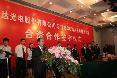 利達(dá)光電股份有限公司和日本SUWA光電株式會(huì)社合資合作簽字儀式在南陽舉行