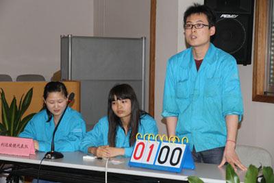 | ??????? 四月的春風(fēng)情深意濃,四月的花海流彩飄香。為深入貫徹經(jīng)營(yíng)工作會(huì)議精神,引導(dǎo)廣大員工更好地了解公司發(fā)展戰(zhàn)略,進(jìn)一步轉(zhuǎn)觀念、解難題,抓調(diào)整、搞創(chuàng)新、促升級(jí),取得生產(chǎn)經(jīng)營(yíng)和企業(yè)管理的新勝利。公司于4月26日在103#3樓大會(huì)議室舉辦學(xué)習(xí)兩級(jí)經(jīng)營(yíng)工作會(huì)議精神知識(shí)競(jìng)賽。 ??????? 本次知識(shí)競(jìng)賽,共四支參賽代表隊(duì),分別是透鏡事業(yè)部代表隊(duì)、棱鏡事業(yè)部代表隊(duì)、模具事業(yè)部代表隊(duì)、機(jī)關(guān)代表隊(duì)。從題庫(kù)下發(fā)到正式比賽僅僅一周的時(shí)間,他們利用下班時(shí)間認(rèn)真準(zhǔn)備,將一道道題目熟記于心。比賽現(xiàn)場(chǎng),他們鎮(zhèn)定自若,經(jīng)過(guò)個(gè)人必答題,答案較長(zhǎng)的風(fēng)險(xiǎn)題,以及緊張的搶答題環(huán)節(jié),棱鏡事業(yè)部代表隊(duì)以180分的好成績(jī)?nèi)〉酶?jìng)賽特等獎(jiǎng),透鏡事業(yè)部代表隊(duì)、模具事業(yè)部代表隊(duì)榮獲一等獎(jiǎng),機(jī)關(guān)代表隊(duì)榮獲二等獎(jiǎng)。其中,透鏡事業(yè)部代表隊(duì)邱繼波、棱鏡事業(yè)部代表隊(duì)趙芳以出色表現(xiàn)取得整場(chǎng)比賽的個(gè)人風(fēng)采獎(jiǎng)。 ??????? 以下為各參賽隊(duì)現(xiàn)場(chǎng)剪影: |