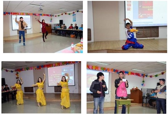????? 晚會現(xiàn)場雖然比較節(jié)儉,卻處處洋溢著喜氣洋洋的和諧氛圍。晚會內(nèi)容豐富多彩,包括歌曲、戲曲、舞蹈、小品、魔術(shù)、男女對唱、武術(shù)等十五個節(jié)目,給全體觀眾們帶來了一場美妙的視聽盛宴。一首合唱歌曲《猜》拉開本次晚會的帷幕;熱辣,奔放的西班牙之夜、印巴熱舞給大家?guī)У搅水悋橛颍桓鶕?jù)公司文化改編的小品《找工作》妙趣橫生,耐人尋味,迸發(fā)出積極向上的正能量;武術(shù)表演懸念頓生,豪氣沖天;歌曲《暗香》、《猜》演繹了情深意長、溫馨浪漫的真摯情感;詩朗誦《咱們工人有力量》,節(jié)目巧妙運(yùn)用詩朗誦獨(dú)特的語言藝術(shù),謳歌公司發(fā)生的變化和取得的輝煌成就,歌頌了利達(dá)人的敬業(yè)精神、團(tuán)隊(duì)合作精神,真情流露,感人肺腑,讓在座的觀眾贊嘆;小品《胡導(dǎo)》以其詼諧幽默的語言、滑稽搞笑的到位表演的藝術(shù)表現(xiàn)形式更是笑爆全場;更有郭富強(qiáng)表演的魔術(shù)和蔣麗的戲曲表演,讓我們領(lǐng)略了利達(dá)人別樣的激情與風(fēng)采。抽獎活動穿插期間,將聯(lián)歡會氣氛一次次推向高潮。