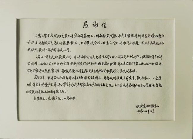 敏實集團研發(fā)中心感謝信 |